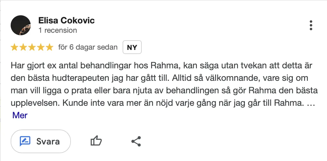 Hej! Rahma Siguer heter jag och är hudterapeut med både SHR, itec och cidesco diplom.